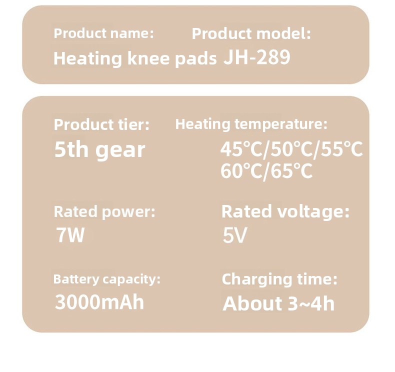 Heating temperature range: approx. 45–65°C (3 heat levels)
